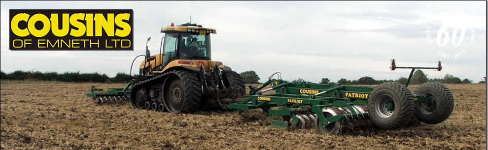 Cousins’ Patriot combination cultivators give up to 6.4 metres of working width with loosening legs at 600mm centres, followed by two rows of discs, the company’s new patented 810mm (32”) diameter Razor Rings and a pair of low ground pressure transport wheels.
